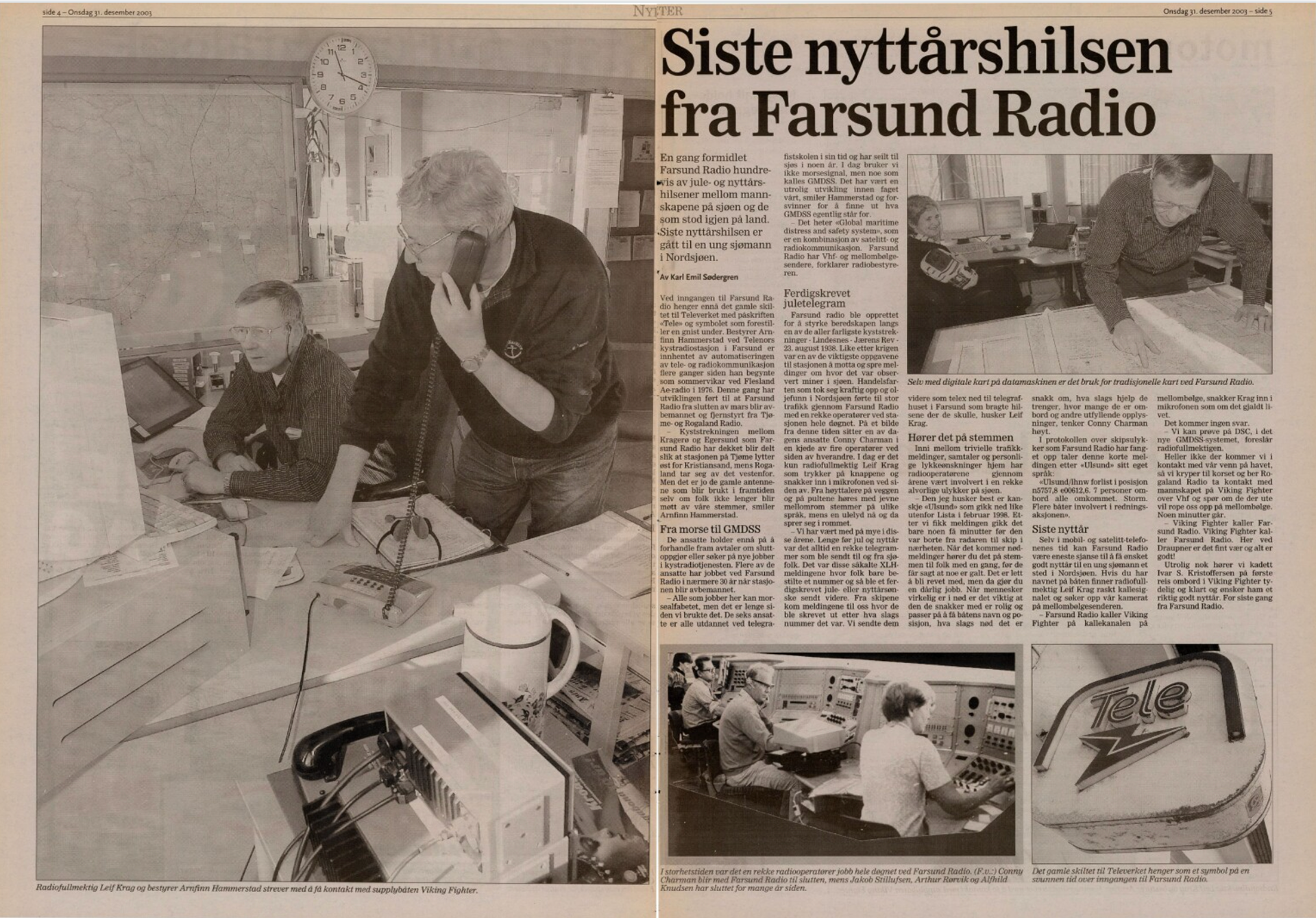 På nyåret overtar Tjøme- og Rogaland Radio lytteområdet til Farsund Radio mellom Kragerø og Egersund. Kystradiostasjonen som har vært involvert i redningsarbeidet under alvorlige ulykker som «Alexander Kielland», «Ulsund» og «Bolero» faller ut av frekvens.